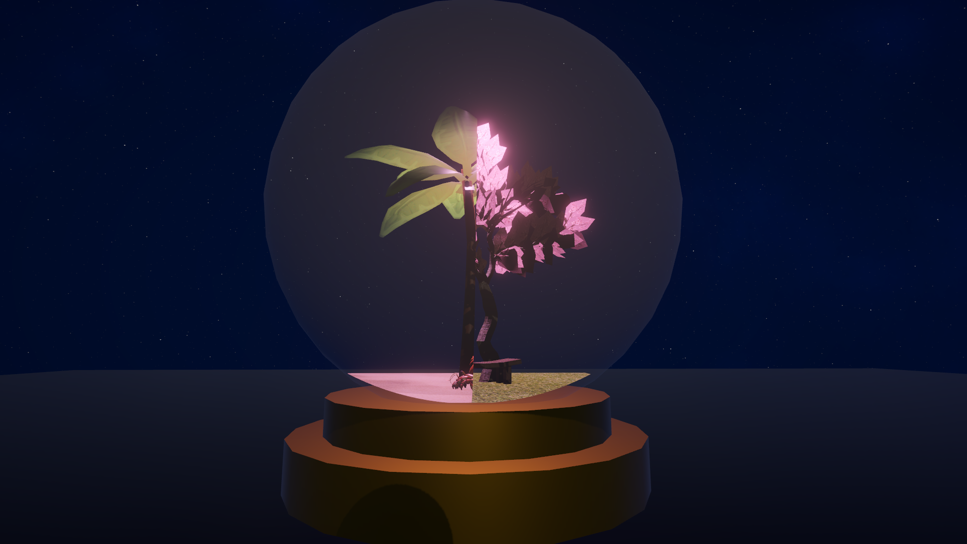 Nous avons donc eu l'idée de représenter les 4 saisons. A la place d'un cube, nous avons intégré une sphère sur un socle, qui rappelle les boules à neige. De plus, un extrait des 4 saisons de Vivaldi se joue quand le joueur se trouve en face d'une saison.
